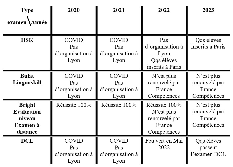 De plus, nous proposons différents formats de cours à Lyon : d’une part, nous donnons des cours collectifs (petit groupe de 3-6 apprenants) ainsi que des cours individuels. Ensuite, nous dispensons également des cours de chinois en ligne ou bien des cours à distance (Skype, Zoom …). Par ailleurs, toutes nos formations sont éligibles au CPF (Compte Personnel de Formation).