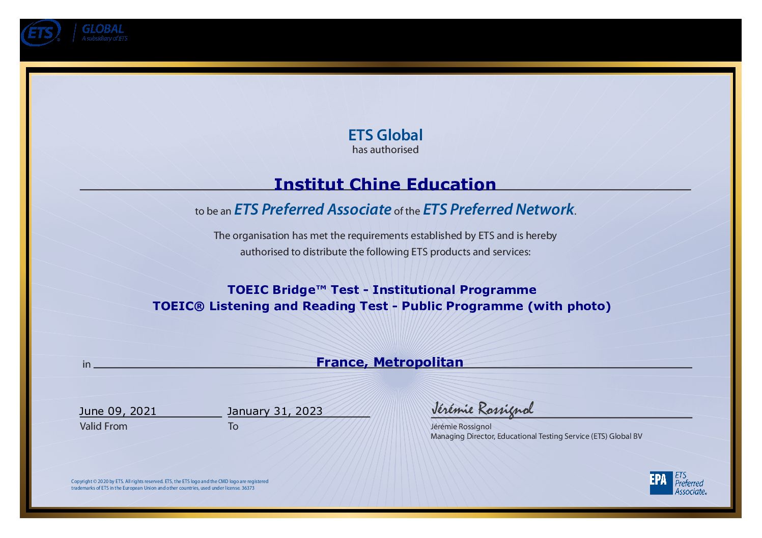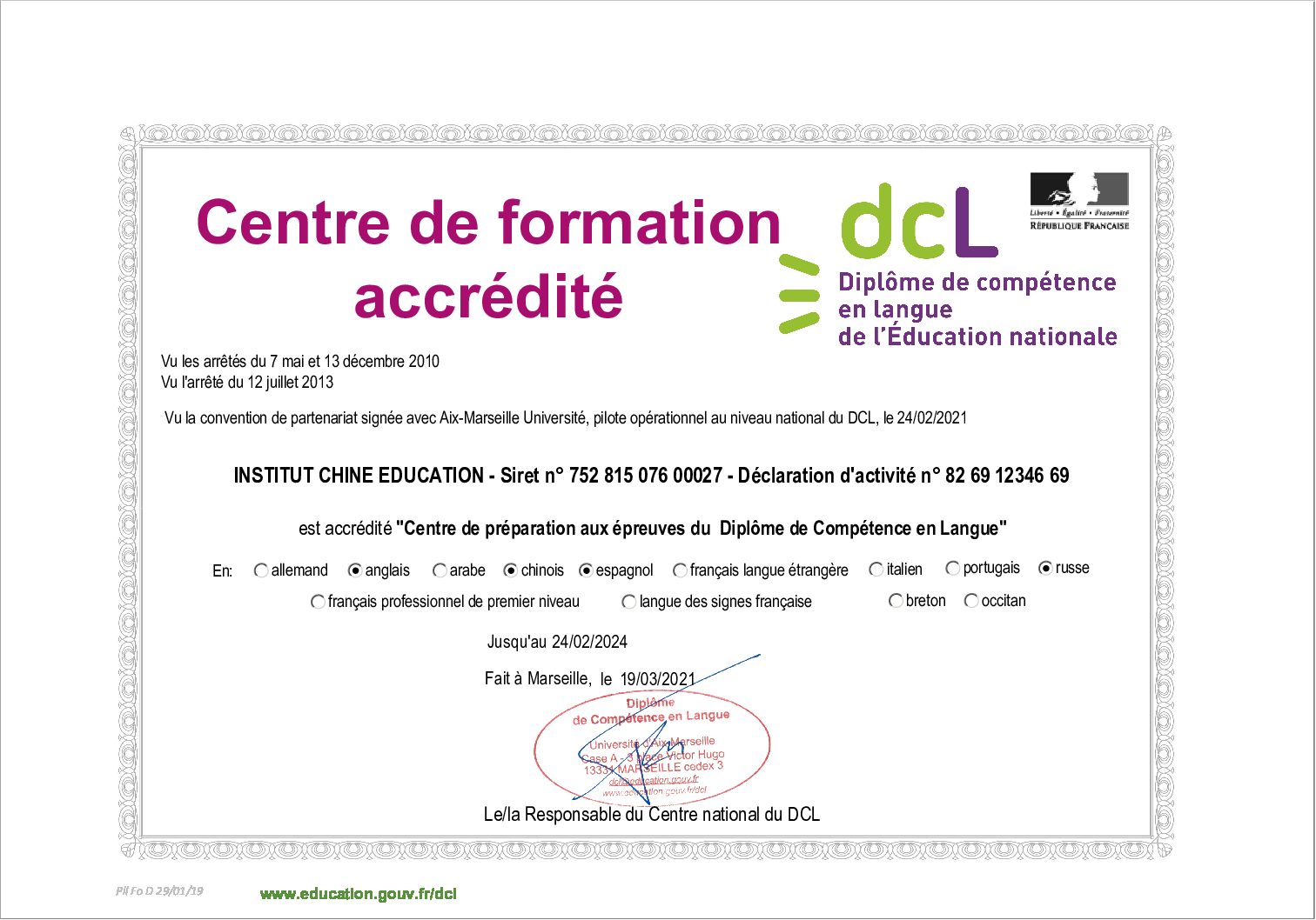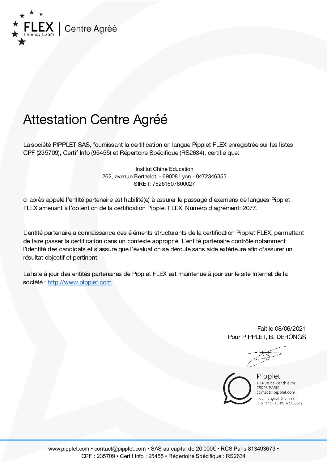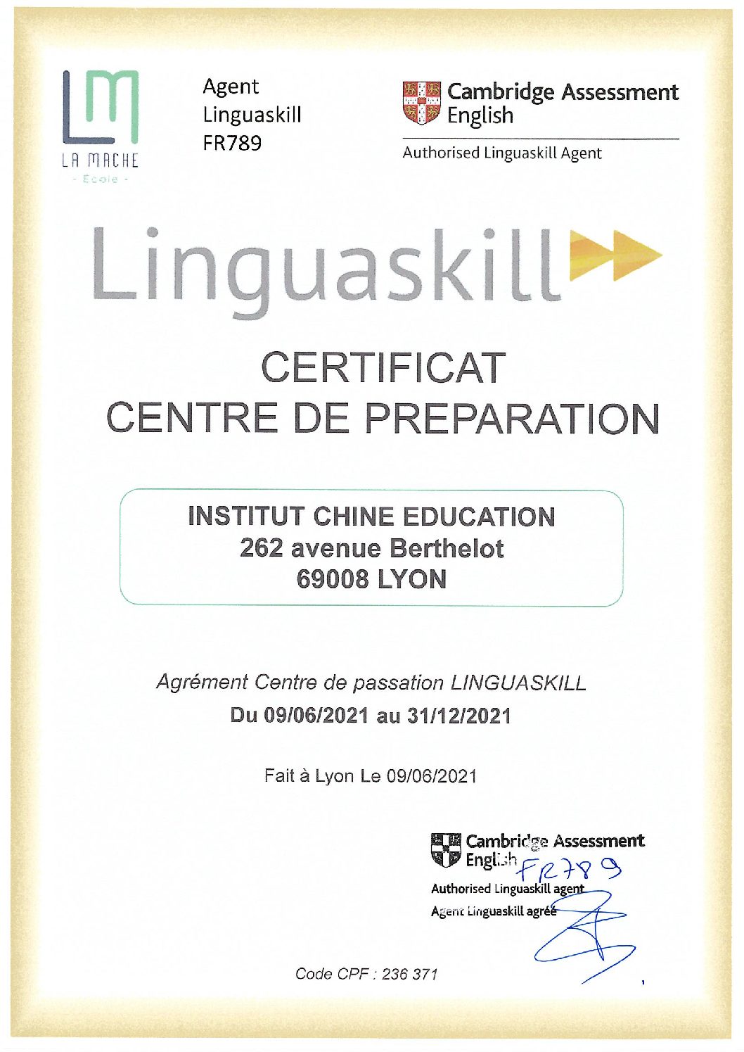 • Enfin, le Hanban de Chine certifie également l’Institut Chine Education.